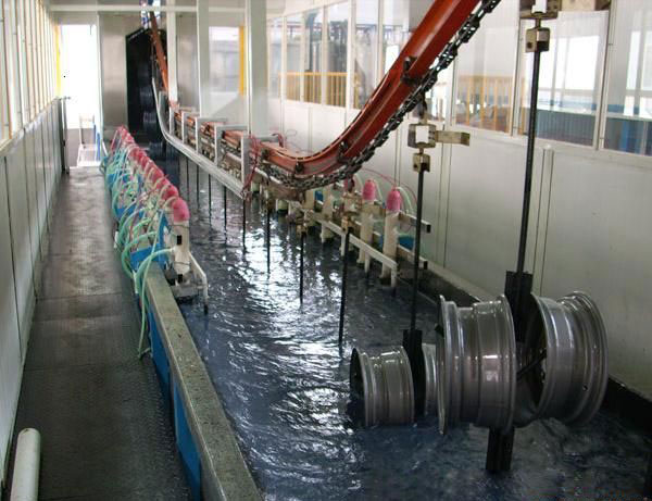 涂装机械中电泳涂装是近年来最普及的涂底漆的方法之一,它是将具有导电性的被涂物作为阴极(或阳极)浸渍在用纯水稀释的、固体浓度为18%左右的电泳涂料槽液中,在槽中另设置与其相对应的阳极(或阴极),在两极间通一定时间的直流电,在被涂物上析出均匀且水不溶解的涂膜的一种涂装方法。适用于汽车摩托车车身及零部件表面底漆涂装、工艺品装饰涂装、机电产品防腐涂装等。